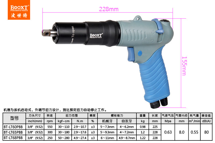 本機為扳機啟動式,外調(diào)扭力(帶外殼保護),自動斷氣式。