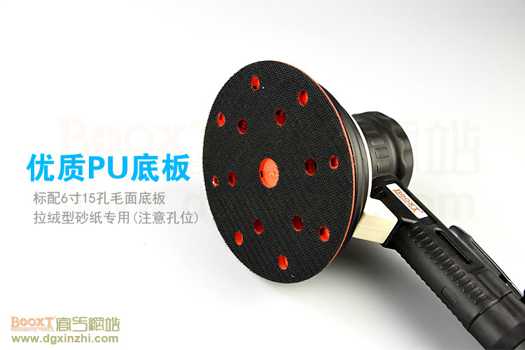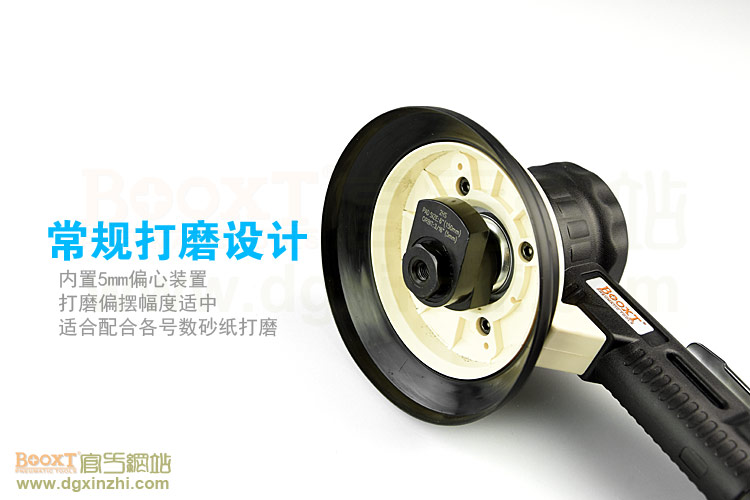 --粗磨偏心度幅度為9.5mm,扭力大,切削能力更大,適合重力打磨。工件一般幅面較大,要求打磨速度快,粗糙的打磨表面,如:玻璃鋼,UV,原子灰等材質(zhì)比較硬的工件,所用砂紙規(guī)格120#以下;