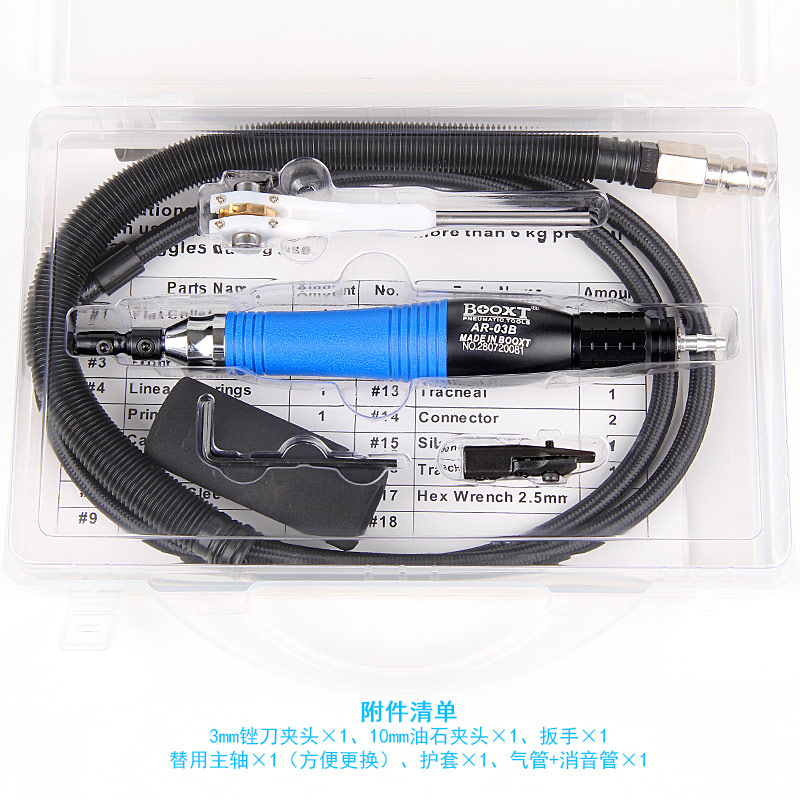• 產(chǎn)品參數(shù): 夾頭直徑:3mm 前后行程:0.3mm 行程轉(zhuǎn)數(shù):52000bpm 外形尺寸:29*207mm 耗 氣 量:0.21立方米/分鐘 重 量:0.2kg