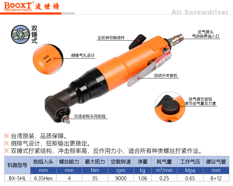 東莞市強(qiáng)勁五金工具有限公司提供臺(tái)灣BOOXT波世特品牌氣動(dòng)工具,氣動(dòng)直角螺絲刀BX-5HL廠家直銷,首件享特價(jià)。咨詢熱線:4008301980