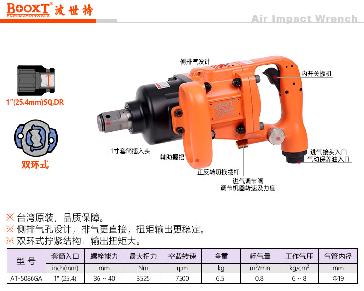 東莞市強勁五金工具有限公司提供臺灣BOOXT波世特品牌氣動工具,超輕氣動風(fēng)炮AT-5086GA廠家直銷,首件享特價。咨詢熱線:4008301980
