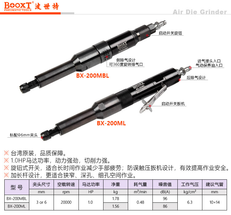 東莞市強勁五金工具有限公司提供臺灣BOOXT波世特品牌氣動工具,加長氣動風(fēng)磨機BX-200ML廠家直銷,首件享特價。咨詢熱線:4008301980