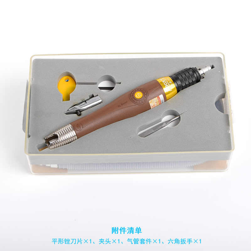 • 產(chǎn)品參數(shù): 夾頭尺寸:3mm;行程:1.2mm;沖程數(shù):10000bpm;長(zhǎng)度:190mm;重量:0.15kg;耗氣量:0.21立方米/分鐘;推薦氣管尺寸:5mm